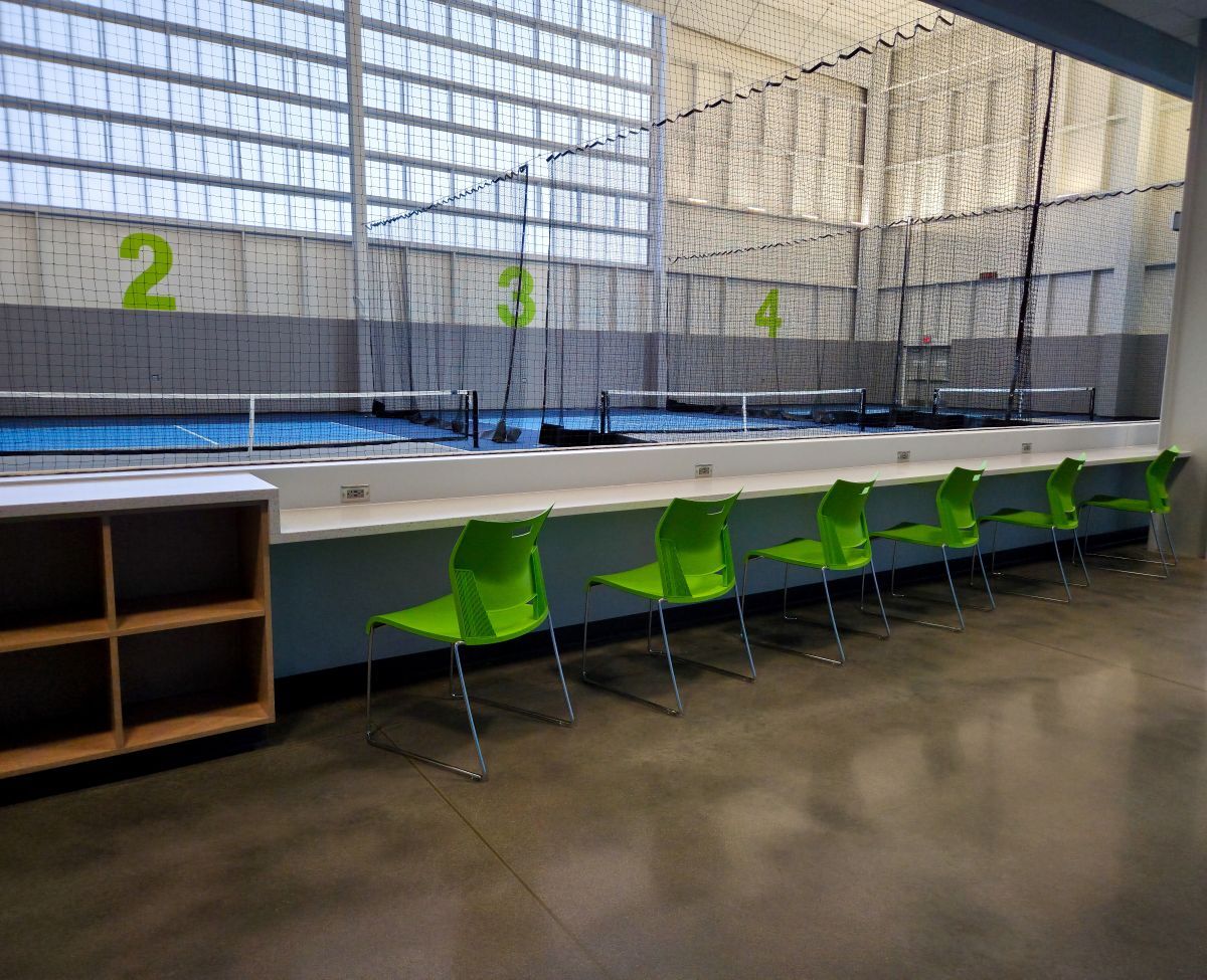 The colors and textures chosen for the furniture were specifically coordinated to tie into the Sportsplex’s logo and overall brand concept. This careful execution resulted in a professional and highly operational facility.