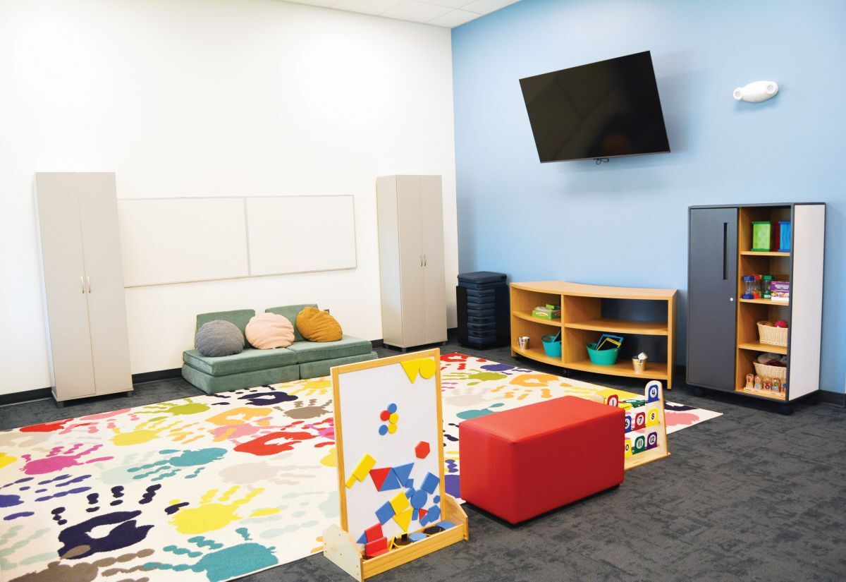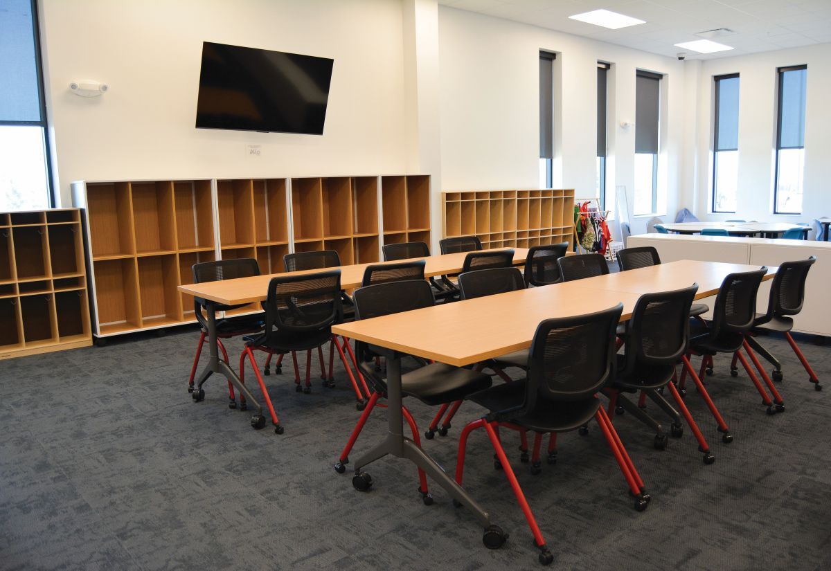 The furniture was selected for its high degree of customization and efficiency. For the private offices, we installed OFS Staks, a highly size-specific desking solution that made it easy to maximize the available space while providing a sleek, modern look. The larger educational, training, and ancillary spaces were furnished using a blend of durable and flexible products from Hon, AMQ, Steelcase, and Smith System, ensuring every zone could support the Wellness Center's diverse needs.